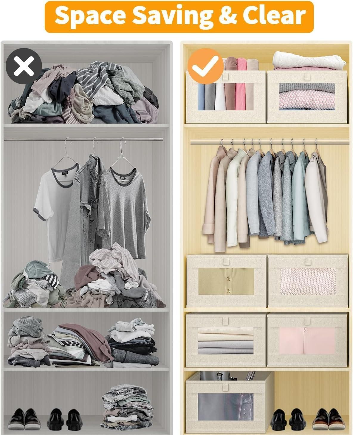 Foldable Linen Closet Organizers and Storage Bins, Storage Containers with Clear Window, Large Storage Boxes Baskets for Organizing Clothing Jeans Toys Books Closet Wardrobe (PACK OF 2) Random Colour